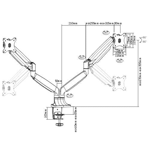 Brateck Dual Monitor Aluminum Interactive Counterbalance Monitor Arm Fit Most 13''-32'' Monitors Up to 9kg per screen VESA 75x75/100x100 (LS)