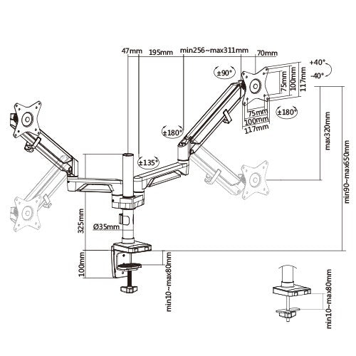 Suggested Desktop Thickness: Clamp:10~80mm Grommet:10~80mm (Clamp:0.39'~3.1' Grommet:0.39'~3.1')