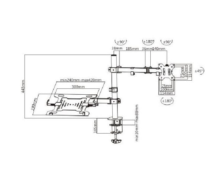 Brateck Economical Double Joint Articulating Steel Monitor Arm with Laptop Holder Fit Most 13'-32' Monitors, Up to 8kg/Screen VESA 75x75/100x1009