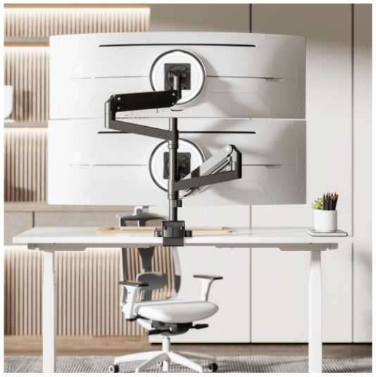 Brateck LDT80-C024P Matte Black Super Heavy-Duty Pole-Mounted Gas Spring Dual Monitor Arm For most 24'-57' Monitors (LS)