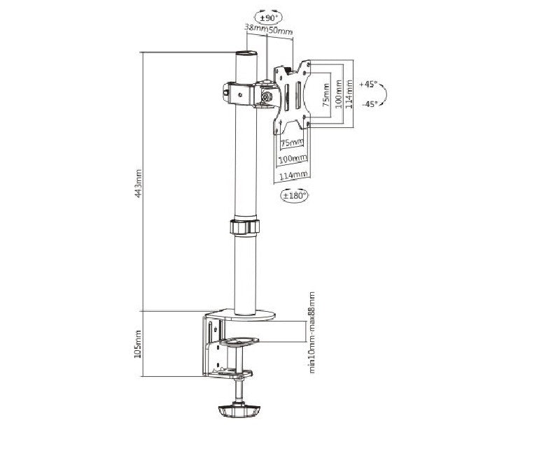 Suggested Desktop Thickness: Clamp:10-88mm, Grommet: 10-75mm (Clamp:0.39'-3.5', Grommet: 0.39'-3')