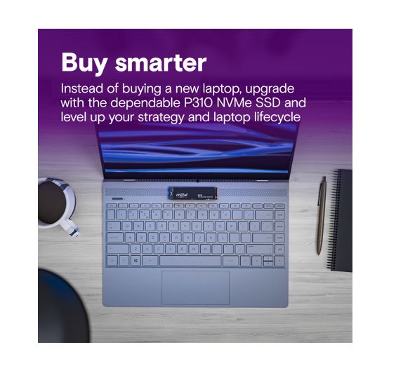 Crucial P310 2TB Gen4 2280 NVMe SSD 7100/6000 MB/s R/W 800TBW 1000K/1000K IOPS 1.5M hrs MTTF Full-Drive Encryption M.2 PCIe4 5yrs