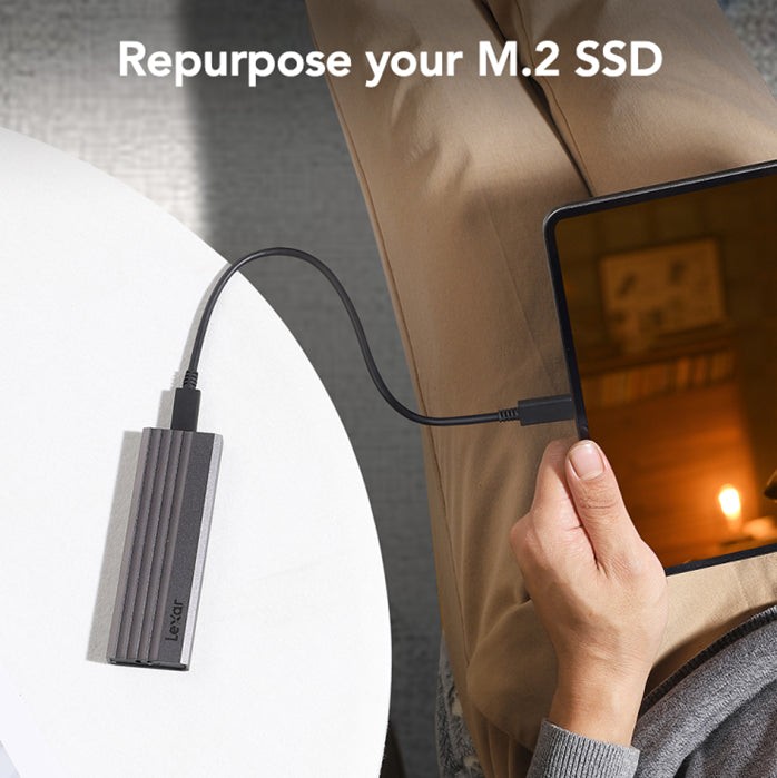 Lexar M.2 SSD Enclosure USB 3.2 Gen2 Supports M.2 NVMe & SATA SSD 1 C To C Cable