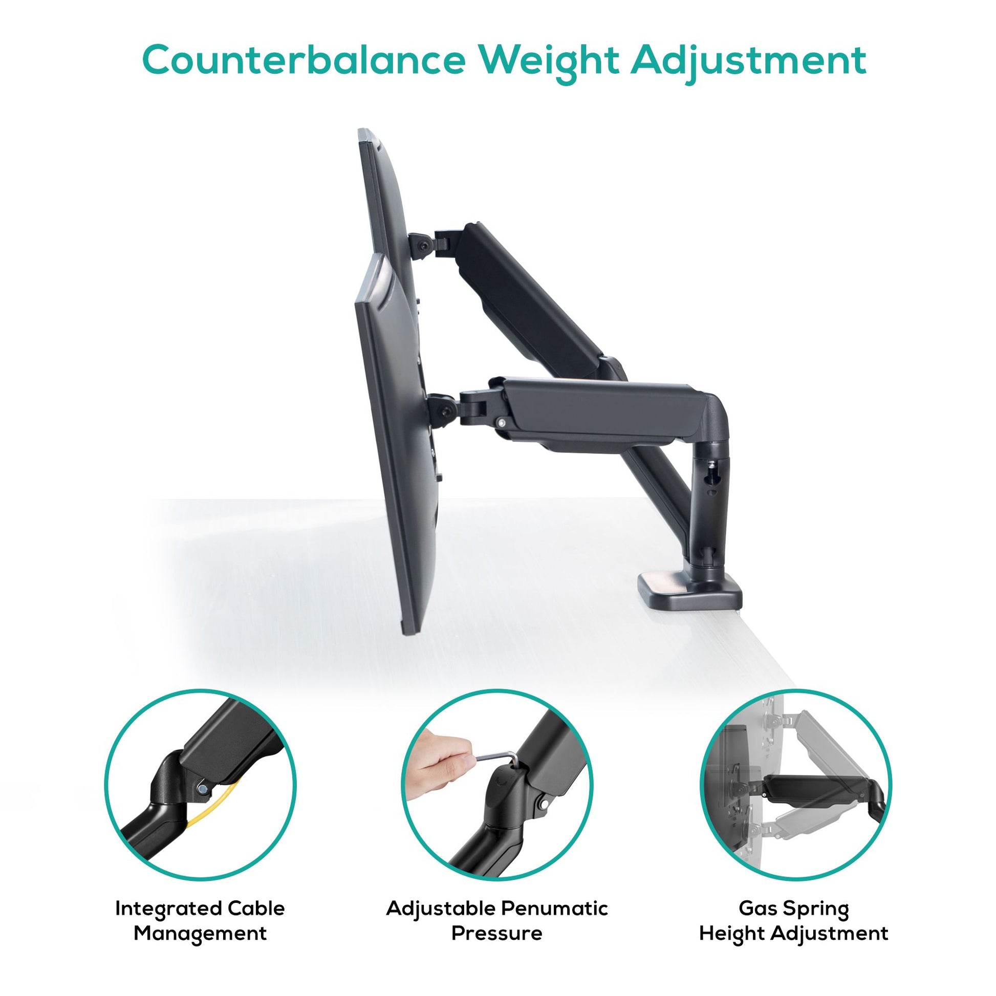• Gas Spring: perfectly counterbalances the weight of your monitor