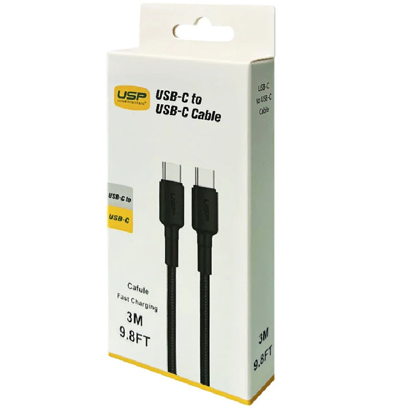 USP BoostUp Braided USB-C to USB-C Cable (3M) Black -3A Fast & Safe Charge,Strong & Durable,Samsung Galaxy,Apple iPhone,iPad,MacBook,Google,OPPO,Nokia